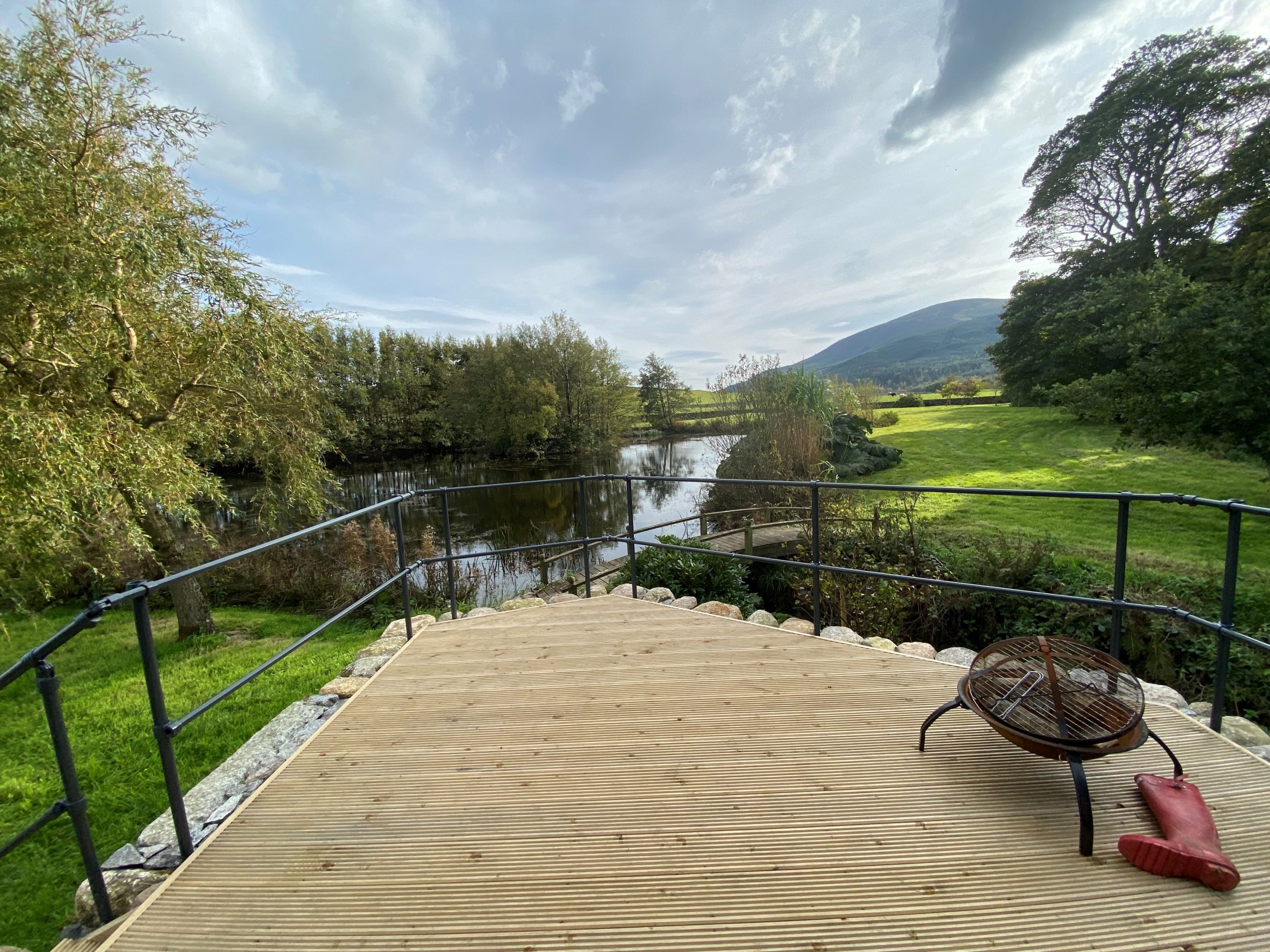 Outside we have an open decking looking on to the pond and further towards Criffel. You will find patio chairs, a table and a BBQ. There is also a separate Boat House that has covered space for sitting or playing games.